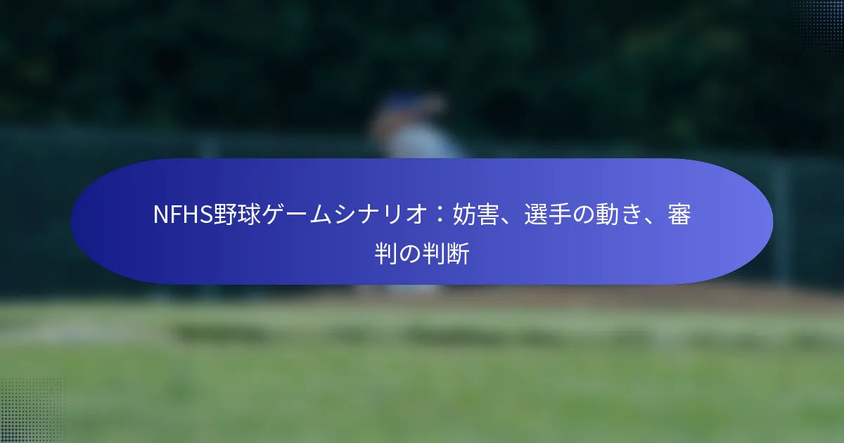 NFHSの野球において、妨害は、フィールダーがボールを持っていない状態でランナーの進行を妨げることとして定義されています。この妨害はゲームのダイナミクスに大きな影響を与え、ベースランナーとフィールダーの動きの両方に影響を及ぼします。審判は、選手の位置、意図、プレイの全体的な文脈を慎重に評価することで、妨害を判断する重要な役割を果たします。 NFHSの野球における妨害とは何ですか? NFHSの野球における妨害は、フィールダーが合法的にベースを走っているランナーの進行を妨げるときに発生します。この妨害は、ランナーの進行能力に影響を与え、特定のルールと審判の判断の対象となります。 NFHSルールに基づく妨害の定義 NFHSは、妨害をボールを持っていないフィールダーがランナーの進行を妨げる行為として定義しています。これは、フィールダーがボールを持たずにベースやランナーの進行経路をブロックする場合など、さまざまなシナリオで発生する可能性があります。 妨害は、フェアとファウルの2つのカテゴリーに分類されます。フェア妨害は、フィールダーが合法的にベースパスに位置しているがボールを持っていない場合に発生し、ファウル妨害は通常、フィールダーがベースラインの外にいるか、プレイを行う位置にいない場合に発生します。 妨害の種類:フェアとファウル 妨害の種類を理解することは、選手やコーチにとって重要です。フェア妨害は、フィールダーが合法的にベースパスに位置しているがボールを持っていないため、ランナーの進行を妨げる場合です。これは、ベースでのプレイ中やランナーが次のベースに進もうとする際に発生する可能性があります。 一方、ファウル妨害は、フィールダーがベースラインの外にいるか、ボールに対してプレイを試みていない場合に発生します。このタイプの妨害はあまり一般的ではありませんが、ルールや審判の判定に関する混乱を引き起こす可能性があります。 妨害判定の重要な要素 妨害判定を行う際には、いくつかの重要な要素を考慮する必要があります。まず、妨害が発生した時点でフィールダーがボールを持っていないことが必要です。次に、ランナーが進行を妨げられている必要があり、これは審判のプレイに対する判断によって評価されます。 審判はまた、妨害が意図的であったか偶発的であったかを判断する必要があります。意図的な妨害はより厳しい罰則を引き起こす可能性があり、偶発的な妨害は警告や軽い結果につながることがあります。 妨害に関する一般的な誤解 一般的な誤解の一つは、フィールダーとランナーの間の接触がすべて妨害を構成するというものです。実際には、妨害はフィールダーの位置と、ボールを持たずにランナーの進行を妨げているかどうかに特に関係しています。 もう一つの誤解は、妨害が常にランナーにベースを与える結果になるというものです。妨害は通常ランナーに進行する権利を与えますが、プレイの具体的な状況と審判の判断が最終的な結果を決定します。 妨害シナリオの例 ランナーが二塁に近づいているシナリオを考えてみましょう。このとき、二塁手がボールを持たずにランナーの進行経路に直接立っている場合、これはフェア妨害として分類され、ランナーはベースを与えられます。 別の例では、フィールダーがベースラインの外に位置し、プレイを試みずにランナーの進行をブロックしている場合、これはファウル妨害となります。審判は状況を評価し、ルールに基づいて適切な行動を決定する必要があります。 妨害は選手の動きにどのように影響しますか? 妨害は、フィールダーがボールを持たずにベースランナーの進行を妨げるときに発生します。この妨害は、プレイ中のベースランナーとフィールダーの両方の動きに大きな影響を与える可能性があります。 ベースランナーへの妨害の影響 妨害が宣告されると、ベースランナーは通常、状況に応じて追加のベースを与えられます。審判の判断は、妨害時のランナーの位置に基づいて、ランナーがどのくらいのベースを得る権利があるかを決定する上で重要な役割を果たします。 例えば、ランナーが次のベースに進もうとする際に妨害されると、彼らはそのベースと、妨害がなければ到達したであろう追加のベースを与えられることがあります。これは攻撃チームに戦略的な利点をもたらす可能性があります。 ベースランナーは、自分の周囲と妨害の可能性に注意を払い、進むべきか、ポジションを保持すべきかについて情報に基づいた判断を下すことが重要です。 プレイ中のフィールダーへの影響 妨害はフィールダーに混乱を引き起こす可能性があり、彼らはプレイを試みる際にルールを把握しなければなりません。フィールダーがランナーを妨害すると、罰則を受ける可能性があり、これがチームの守備戦略に影響を与えることがあります。 フィールダーは、ボールを持たずにランナーの進行を誤っ