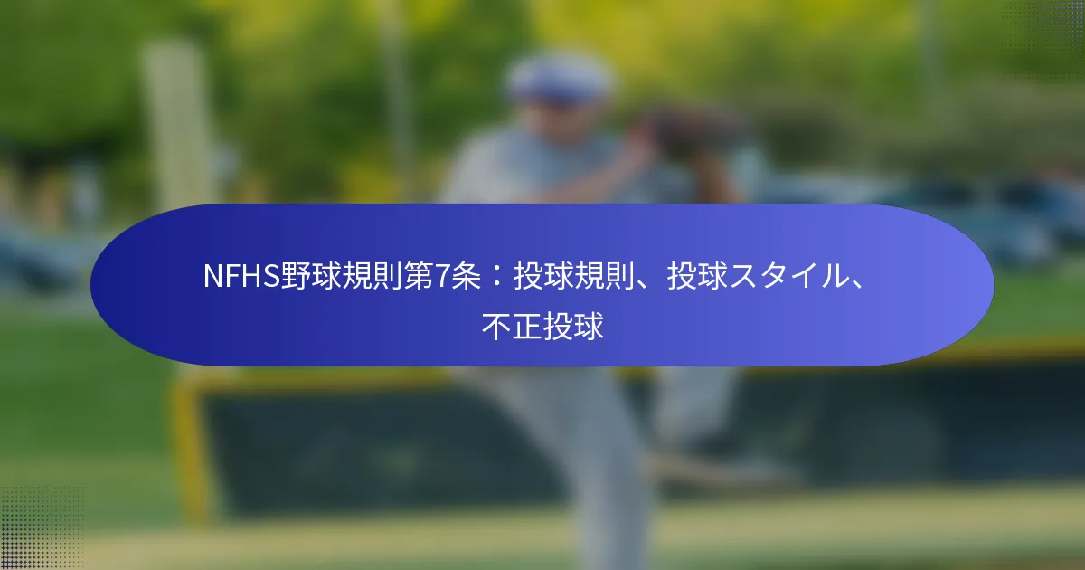 NFHSルール7は、高校野球における公正なプレーを確保するために、合法的な投球スタイルや違法投球の定義を含む重要な投球規則を概説しています。これらのルールを理解することは、投手やコーチがパフォーマンスを最適化し、リーグの基準に従うために不可欠です。これらの規則を遵守することは、ゲームの整合性を維持するだけでなく、選手の安全を促進します。 NFHSルール7における主要な投球規則は何ですか? NFHSルール7の主要な投球規則は、合法的な投球スタイル、違法投球の定義、および投手に求められる全体的な遵守に焦点を当てています。これらの規則は、公正なプレーを確保し、高校野球の試合の整合性を維持します。 投球規則の定義 NFHSルール7の下での投球規則は、投手が打者にボールを投げる方法を定義します。これには、正しいスタンス、ウインドアップ、投球技術が含まれ、投手が合法と見なされるために従う必要があります。たとえば、投手は投球を行う前に、両足を投手プレートの上に置かなければなりません。 さらに、このルールは、速球、カーブ、チェンジアップなど、許可されている投球の種類を指定し、各投球スタイルのメカニクスを概説しています。これらの定義を理解することは、試合中の遵守を確保するために選手やコーチにとって重要です。 投球規則の遵守の重要性 投球規則の遵守は、高校野球における公平な競技環境を維持するために不可欠です。これらのルールに従うことは、チーム間の公平性を促進するだけでなく、投手が安全で適切な技術を使用することを保証することで、怪我を防ぐのにも役立ちます。コーチと選手は、意図しない違反を避けるために、これらの規則に精通している必要があります。 さらに、遵守はゲームとそのルールへの敬意を育むため、若いアスリートのスポーツマンシップの発展に不可欠です。投球規則に従うことで、選手は規律と責任感を学び、これはフィールド内外で貴重な特性となります。 投球規則違反の結果の概要 投球規則の違反は、試合中に重大な結果をもたらす可能性があります。投手が違法投球を行ったと判断された場合、審判は状況に応じてボールまたはストライクを宣告することがあり、これが試合の結果に影響を与える可能性があります。繰り返し違反があった場合、投手は試合から退場させられたり、さらなる懲戒処分を受けることがあります。 即時の試合の結果に加えて、チームは順位やトーナメントでの資格に影響を与える罰則を受ける可能性があります。これらの規則違反の影響を理解することは、投手がルールに精通する必要性を強調します。 高校野球におけるNFHS投球規則の文脈 NFHS投球規則は、高校野球のために特別に設計されており、青年選手のスキルレベルや身体的発達を考慮しています。これらのルールは、若いアスリートのさまざまな能力に対応するバランスの取れた競争環境を作り出すことを目的としています。規則は、すべての選手が安全かつ効果的に参加できるように調整されています。 高校のコーチは、選手にこれらの規則を教育する上で重要な役割を果たします。ルールの強い理解を植え付けることで、コーチは選手がスキルを発展させるのを助け、怪我のリスクを最小限に抑え、公正な競争を確保します。 他の野球団体の投球規則との比較 NFHSの投球規則をメジャーリーグベースボール(MLB)やアメリカンリージョンなどの他の団体の規則と比較すると、顕著な違いが見られます。たとえば、NFHSには選手が試合中に投げることができる投球数に関する特定のルールがありますが、MLBの規則は投球数や選手の健康管理により重点を置いています。 さらに、許可される投球スタイルは団体によってわずかに異なる場合があります。これらの違いを理解することは、高校から大学またはプロレベルに移行する選手にとって重要であり、さまざまな基準や期待に適応する必要があります。 NFHS野球で許可されている異なる投球スタイルは何ですか? NFHS野球では、投手はさまざまな投球スタイルを使用することが許可されており、これが彼らのパフォーマンスや戦略に大きな影響を与えます。これらのスタイルを理解することは、選手やコーチが投球の効果を最適化し、リーグの規則に従うために重要です。 投球における投球スタイルの定義 投球における投球スタイルは、投手がボールを投げるために使用する特定の技術や動作を指します。これらのスタイルは、ボールの速度、動き、全体的な効果に影響を与える可能性があります。各スタイルには、投手のパフォーマンスや打者の反応に影響を与える独自の特性があります。 NFHS野球では、投手は公正なプレーを確保するために、投球に関する特定のルールに従う必要があります。これらの規則は、投手が体をどのように位置づけ、投球を行うために使用する動作の順序を規定しています。 許可されている一般的な投球スタイルの概要 NFHS野球で一般的に