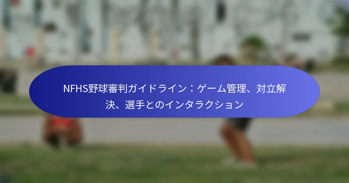 NFHSの野球審判ガイドラインは、効果的なゲーム管理、対立解決、そして選手間のポジティブなインタラクションを強調しています。審判の責任を明確にし、秩序を維持するための戦略を提供することで、これらのガイドラインは公正で秩序あるゲームを確保するのに役立ちます。審判は明確かつプロフェッショナルにコミュニケーションを行い、選手やコーチ間の尊重を促進し、発生する可能性のある対立に対処することが奨励されています。 野球におけるゲーム管理のためのNFHSガイドラインとは? 野球におけるゲーム管理のためのNFHSガイドラインは、スムーズで公正かつ秩序あるゲームを確保することに焦点を当てています。これらのガイドラインは、審判の責任、秩序を維持するためのルール、ペースを保つための戦略、そして中断を処理するためのプロトコルを概説しています。 ゲーム中の審判の主な責任 審判はゲームを管理する上で重要な役割を果たし、すべてのルールが一貫して施行されることを確保します。彼らの主な責任には、プレイに関する正確な判定、ゲームのペースを維持すること、選手やコーチ間の争いに対処することが含まれます。 審判はまた、選手やコーチと効果的にコミュニケーションを取り、自らの決定について明確な説明を提供する必要があります。これにより、フィールド上での尊重と理解が促進され、ポジティブなゲーム環境にとって不可欠です。 さらに、審判は選手の行動を監視し、すべての参加者がゲームのルールを遵守することを確保する責任があります。これには、秩序を維持するためにスポーツマンシップに反する行動に迅速に対処することが含まれます。 フィールド上の秩序を維持するための基本ルール フィールド上の秩序を維持することは、成功したゲームにとって重要です。審判は、選手の行動に関するルールを施行し、挑発、議論、または対戦相手や審判に対するいかなる形の不敬も禁止する必要があります。 審判は、ゲームが始まる前に行動に対する期待を明確に理解することが不可欠です。これは、コーチや選手とのプレゲームミーティングを通じて、 misconductの結果を概説することで達成できます。 審判はまた、選手とコーチ間のインタラクションを監視し、必要に応じて介入して対立がエスカレートするのを防ぐことに注意を払うべきです。これらのルールを一貫して施行することで、ゲーム全体にわたって尊重のある雰囲気を作り出すことができます。 効果的なゲームのペースと流れのための戦略 効果的なゲームのペースは、選手の関与と観客の興味を維持するために重要です。審判は、選手がピッチの間に集中し、準備を整えるよう促すことで、ゲームのテンポを管理する積極的な姿勢を持つべきです。 1つの戦略は、各イニングのための明確なタイムラインを設定し、選手が期待されるペースを理解できるようにすることです。たとえば、審判は投手が合理的な時間内にピッチを投げるようにガイドラインを設定することができます。通常は約20秒です。 さらに、審判は、怪我や機器の問題によって引き起こされる遅延に迅速に対処する準備をしておくべきです。迅速な解決は、ゲームを進行させ、ポジティブな雰囲気を維持するのに役立ちます。 ゲームの中断や遅延に対処する方法 中断や遅延はゲームの流れを妨げる可能性があるため、審判はそれらを効率的に処理する必要があります。一般的な中断には、天候による遅延、怪我、または機器の故障が含まれます。 天候による遅延に直面した場合、審判は条件を監視し、プレイを中断するかどうかについてタイムリーな決定を下すことで選手の安全を優先するべきです。これらの状況では、コーチや選手とのコミュニケーションが不可欠で、全員が情報を得られるようにする必要があります。 怪我の場合、審判は医療スタッフが選手を迅速に評価できるようにし、安全が確保され次第ゲームを再開することを保証するべきです。明確な合図とコミュニケーションは、これらの中断を効果的に管理するのに役立ちます。 プレゲームおよびポストゲーム手続きのベストプラクティス プレゲーム手続きは、適切に管理されたゲームのトーンを設定します。審判は、ルール、期待、およびゲームに関連する特定の懸念についてコーチや選手と徹底的なプレゲームミーティングを行うべきです。 このミーティングでは、審判はフィールド上でのスポーツマンシップと尊重の重要性を強調するべきです。コーチとの関係を築くことも、ゲーム全体を通じてスムーズなインタラクションを促進するのに役立ちます。 ポストゲーム手続きも同様に重要です。審判は、自分たちのクルーとゲームを振り返り、直面した課題や改善点について話し合うための時間を取るべきです。さらに、選手やコーチの努力を認めることは、今後のゲームに向けてポジティブな関係を育むのに役立ちます。 審判はゲーム中にどのように効果