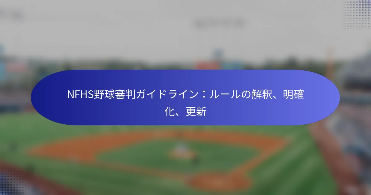 NFHSの野球審判ガイドラインは、アメリカ全土の高校野球の試合を officiate するための重要なリソースであり、ルールの適用における一貫性と公平性を促進します。最近の更新と明確化は、審判と選手の理解を深め、一般的な混乱の領域に対処し、公平なプレーとルールの遵守を確保します。 NFHSの野球審判ガイドラインとは何ですか? NFHSの野球審判ガイドラインは、アメリカにおける高校野球の試合を officiate するためのフレームワークを提供します。これらのガイドラインは、さまざまな州の協会におけるルールの適用において、一貫性、公平性、明確性を確保します。 NFHSガイドラインの定義と目的 NFHSガイドラインは、高校野球の officiate を標準化するために設計された一連のルールと解釈です。その主な目的は、公平なプレーを促進し、すべての審判がルールを効果的に施行するために必要な知識を持つことを確保することです。 これらのガイドラインは、審判、コーチ、選手のためのリファレンスとして機能し、複雑なルールや解釈を明確にするのに役立ちます。全体的な officiating の質とゲームの誠実性を向上させることを目指しています。 ガイドラインの主要な要素 NFHSガイドラインは、審判が理解し適用しなければならないいくつかの重要な要素を含んでいます。これには、ルールの解釈、オフィシエイティングのメカニクス、ゲーム管理戦略が含まれます。 ルールの解釈: 曖昧さを防ぐための特定のルールの詳細な説明。 オフィシエイティングのメカニクス: 試合中のポジショニングとシグナルのベストプラクティス。 ゲーム管理: 様々なゲーム状況を処理し、秩序を維持するための戦略。 これらの要素は、審判が試合中に情報に基づいた決定を下せるようにするための包括的なリソースを作成するために協力します。 審判とコーチにとっての重要性 NFHSガイドラインは、審判とコーチにとって不可欠であり、ルールに対する共通の理解を確立します。審判にとって、これらのガイドラインの遵守は、フィールドでの自信と権威を育み、コーチにとっては、試合中に何を期待するかの明確さを提供します。 コーチは、ガイドラインを使用して選手にルールについて教育し、スポーツマンシップとオフィシエイティングへの敬意を促進できます。この共有された知識は、ゲームに関与するすべての人にとってよりポジティブな環境を作るのに役立ちます。 ガイドラインの開発と更新の方法…