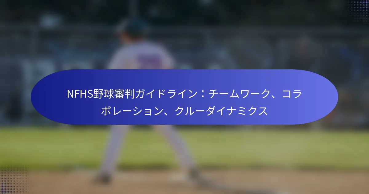 NFHSの野球審判ガイドラインは、オフィシエイティングにおけるチームワークと協力の重要な役割を強調しています。効果的なコミュニケーションと明確な合図を強調することで、審判はクルーのダイナミクスを向上させ、すべての参加者にとってよりプロフェッショナルで正確なゲーム体験を提供できます。対立解決技術を実施することで、これらの関係がさらに強化され、一体感のある効率的なオフィシエイティングチームが確保されます。 NFHSの審判チームワークに関するガイドラインとは? NFHSの審判チームワークに関するガイドラインは、スムーズなゲームを確保するために、公式間の協力と効果的なコミュニケーションの重要性を強調しています。これらの原則はプロフェッショナリズムを維持し、正確なオフィシエイティングを促進し、最終的には選手や観客にとっての全体的な体験を向上させます。 NFHSの審判チームワーク原則の概要 NFHSは、明確なコミュニケーション、相互尊重、共有責任に焦点を当てた審判チームワークのいくつかの重要な原則を示しています。審判は互いにサポートし合い、ゲーム中に各メンバーが自分の役割と義務を認識していることを確保することが奨励されています。 効果的なチームワークには、定期的な試合前のディスカッションや試合後の評価が含まれ、審判は懸念事項に対処し、パフォーマンスを向上させることができます。この協力的なアプローチは、ゲームの整合性を維持するために不可欠なポジティブな環境を育みます。 審判間の協力の重要性 審判間の協力は、ゲーム全体の一貫性と公正さを維持するために重要です。審判が協力して働くことで、ゲームの状況をよりよく管理し、情報に基づいた決定を下し、困難な瞬間に互いにサポートを提供できます。 強力な協力は、フィールド上での対立や意見の不一致を処理する能力を高めます。問題を集団で議論し解決することで、審判は団結した姿勢を示し、選手やコーチの目においてその権威とプロフェッショナリズムを強化します。 クルー内の各審判の主な責任 クルー内の各審判には、オフィシエイティングの全体的な効果に寄与する特定の責任があります。通常、クルーチーフはゲームを監督し、最終的な決定を下し、すべての審判が効果的に職務を遂行していることを確認します。 プレート審判は、ボールとストライクの判定を行い、ホームプレートの後ろからゲームを管理し、選手やコーチとコミュニケーションを取ります。 ベース審判は、ランナーを監視し、ベースでのプレーの判定を行い、プレート審判をサポートします。 すべての審判はゲームの状況を常に把握し、必要に応じて互いに支援できるように準備しておく必要があります。 これらの役割を理解することで、審判はシームレスに協力し、ゲームのすべての側面が正確かつ公正にオフィシエイトされることを確保します。 フィールド上での期待される行動とプロフェッショナリズム 審判はフィールド上で高いレベルのプロフェッショナリズムを維持することが期待されており、これはNFHSの行動規範に従うことを含みます。この規範は、選手、コーチ、他の公式に対する尊重、ならびに公平性と公正さへのコミットメントを強調しています。 審判は自分の決定に自信を持ち、関係者全員と明確にコミュニケーションを取るべきです。高圧の状況でも冷静さを保つことは、ゲームの整合性を維持するために不可欠です。 NFHSのガイドラインが効果的なオフィシエイティングを促進する方法 NFHSのガイドラインは、審判間のチームワークと協力に関する明確な期待を設定することで、効果的なオフィシエイティングを促進します。相互尊重とサポートの環境を育むことで、これらのガイドラインは審判がより良い決定を下し、ゲームの状況をより効果的に管理するのを助けます。 NFHSが提供するトレーニングプログラムやワークショップは、これらの原則をさらに強化し、審判が一体として機能するために必要なスキルを身につけることを可能にします。この継続的な発展は、審判が最新のベストプラクティスを維持し、高いオフィシエイティング基準を保つために重要です。 審判は試合中にコミュニケーションを改善するにはどうすればよいですか? 審判は、効果的な口頭および非口頭の戦略を実施し、明確な合図を確立し、テクノロジーを統合することで、試合中のコミュニケーションを向上させることができます。これらの実践はチームワークと協力を促進し、ゲーム全体を通じてクルーのダイナミクスを強化します。 明確な口頭コミュニケーションのための戦略 明確な口頭コミュニケーションは、審判が効果的に調整するために不可欠です。審判は簡潔な言葉を使用し、チームメイトを混乱させる可能性のある専門用語を避けるべきです。共通の語彙を確立することで、重要なゲームの瞬間における議論をスムーズに進めることができます。 定期的な試合