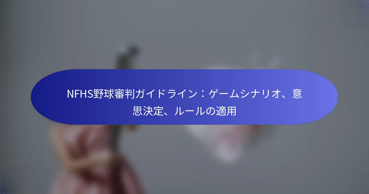 NFHSの野球審判ガイドラインは、高校の試合における公正なプレーと選手の安全を確保するための重要なルールと手続きを提供します。審判はルールの知識を適用し、プレートでのプレーやベースランニングの争いなど、さまざまな試合シナリオにおいて迅速に判断を下す際に状況認識を示さなければなりません。効果的なコミュニケーションは、一貫性を維持し、試合の誠実さを守るために重要です。 審判のための主要なNFHS野球ルールは何ですか? 審判のための主要なNFHS野球ルールは、公正なプレー、選手の安全、試合の適切な進行を確保することに焦点を当てています。これらのルールは、試合手続き、選手の資格、設備基準など、さまざまな側面をカバーし、高校レベルの野球試合を裁くための包括的な枠組みを提供します。 基本的なNFHS野球ルールの概要 NFHSの野球ルールは、審判が試合中に施行しなければならない基本的なガイドラインを含んでいます。主な分野は以下の通りです: 試合の時間:高校の試合は通常7イニングで構成され、延長イニングに関する特定のルールがあります。 選手の行動:審判は選手の行動を管理し、スポーツマンシップ基準の遵守を確保しなければなりません。 設備規則:すべてのバットと保護具は、選手の安全を確保するためにNFHSの仕様を満たさなければなりません。 これらの基本的なルールを理解することは、審判が試合全体でコントロールと公正を維持するために重要です。各ルールは、選手にとって安全で競争的な環境を促進するように設計されています。 NFHS野球規則の最近の更新 NFHS野球規則の最近の更新は、試合の流れと選手の安全を向上させることを目的とした変更を導入しました。注目すべき更新には以下が含まれます: 選手が投げるピッチの数を制限するための投球規則の調整。 電子スコアキーピングなど、試合管理における技術の使用に関する新しいガイドライン。 特にヘルメットや保護具に関する選手の設備に関する安全対策の強化。 これらの更新は、選手の福祉と審判の誠実さを優先しながら、試合を進化させるNFHSのコミットメントを反映しています。 NFHSルールに関する一般的な誤解 NFHS野球ルールに関する多くの誤解が存在し、審判や選手の間で混乱を引き起こす可能性があります。一般的な誤解には以下が含まれます: NFHSルールがMLBルールと同一であると信じること;類似点はあるものの、重要な違いがあります。 他のリーグで合法と見なされるすべての設備がNFHSプレーで受け入れられると仮定すること。 選手の資格や移籍規則に関するルールを誤解すること。 これらの誤解に対処することは、審判がルールを正確に施行し、高校野球を規定する特定の規則について選手やコーチを教育するために重要です。 公式NFHSルールブックのリソース 公式NFHSルールブックを探している審判は、最新の規則について情報を得るためのさまざまなリソースにアクセスできます。主なリソースには以下が含まれます: ダウンロード可能なルールブックや更新を提供するNFHSのウェブサイト。 印刷されたルールブックやトレーニングセッションを提供する地元の高校体育協会。 ルールの適用や解釈について審判を教育するためにNFHSが主催するワークショップやクリニック。 これらのリソースを活用することで、審判は施行するルールについて十分に準備し、知識を持つことができます。…