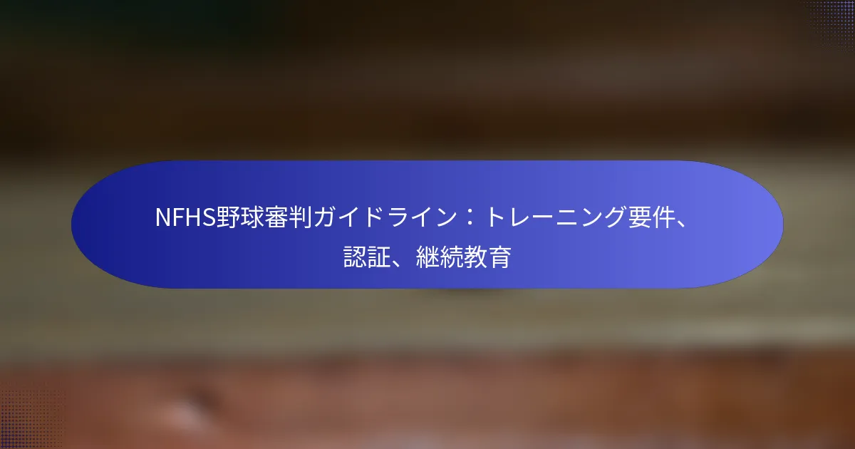 NFHS野球審判ガイドラインは、審判がその役割に十分に備えるための重要なトレーニング要件、認証プロセス、および継続教育を概説しています。候補者は、高校野球の試合を officiate するために必要な認証を取得するために、特定の教育プログラムと試験を完了しなければなりません。さらに、認証を受けた審判は、ルールの変更やスポーツにおけるベストプラクティスに常に最新の情報を持つために、継続教育に参加する必要があります。 NFHS野球審判のトレーニング要件は何ですか? NFHS野球審判のトレーニング要件には、必要なスキルと知識を身につけるために設計された特定の教育プログラムを完了することが含まれます。これらのプログラムは、審判がその役割に十分に備えるために、ルール、メカニクス、およびゲーム管理に焦点を当てています。 必要なトレーニングプログラムの概要 NFHS野球審判は、オフィシエイティングのさまざまな側面をカバーする包括的なトレーニングプログラムを受けなければなりません。これらのプログラムは、ゲームのルール、適切なメカニクス、フィールド上での効果的なコミュニケーションに関するしっかりとした基盤を提供するように構成されています。 通常、トレーニングプログラムは州の体育協会や地元の審判協会を通じて提供されます。これには、教室での指導、フィールドでのトレーニング、および理解度と準備状況を評価するための評価が含まれる場合があります。 将来の審判のためのコースの種類 将来の審判は、初心者、中級者、上級者のレベルを含むいくつかの種類のコースから選択できます。初心者コースは基本的なルールとメカニクスに焦点を当てており、上級コースはより複雑な状況やゲーム管理戦略に深く掘り下げます。 一部のプログラムでは、特定の年齢層や競技レベルに焦点を当てた専門コースも提供しています。これらのコースは、審判がオフィシエイトするリーグのニーズに合わせてスキルを調整するのに役立ちます。 トレーニングセッションの期間と構造 トレーニングセッションの期間はプログラムの深さに応じて異なり、通常は数日から数週間の範囲です。ほとんどのセッションには、学習を強化するために理論的な指導と実践的な応用の組み合わせが含まれています。 トレーニングセッションは、講義、ディスカッション、実践的な練習の組み合わせで構成されることがよくあります。このアプローチにより、審判はルールを学ぶだけでなく、試合中にそれを効果的に適用する方法も学ぶことができます。 審判教育における実践的なトレーニング要素 実践的なトレーニング要素は、試合を自信を持ってオフィシエイトするために必要なスキルを開発するために不可欠です。これらの要素には、トレーニーが監督の下でプレイを呼び出し、ゲーム状況を管理する練習を行うフィールド上のシミュレーションが含まれる場合があります。 さらに、多くのプログラムではビデオ分析を取り入れており、審判が自分のパフォーマンスをレビューし、実際の試合シナリオから学ぶことができます。このフィードバックは、継続的な改善とスキル開発にとって重要です。 トレーニングプログラムの資格基準 NFHS審判トレーニングプログラムの資格基準は、通常、候補者が特定の年齢、通常は18歳以上であることを要求します。一部のプログラムでは、ゲームの基本的な理解を確保するために、選手またはコーチとしての野球のバックグラウンドを要求する場合もあります。 場合によっては、候補者はトレーニングプログラムに登録するために登録プロセスを完了し、料金を支払う必要があります。将来の審判は、特定の要件や推奨事項について地元の協会に確認することをお勧めします。 NFHS野球審判の認証を取得するにはどうすればよいですか? NFHS野球審判の認証を取得するには、候補者は試験と継続教育を含む申請プロセスを完了する必要があります。この認証は、高校野球の試合を officiate するために不可欠であり、審判がルールや規則について知識を持っていることを保証します。 審判認証の申請手順 NFHS野球審判認証の申請プロセスには、いくつかの重要なステップが含まれます。まず、候補者は申請書を記入する必要があります。これは通常、NFHSのウェブサイトまたは地元の高校体育協会を通じて見つけることができます。 申請を提出した後、候補者は州によって異なる必要な料金を支払う必要があります。申請が処理されると、候補者は今後のトレーニングセッションや試験日についての情報を受け取ります。…